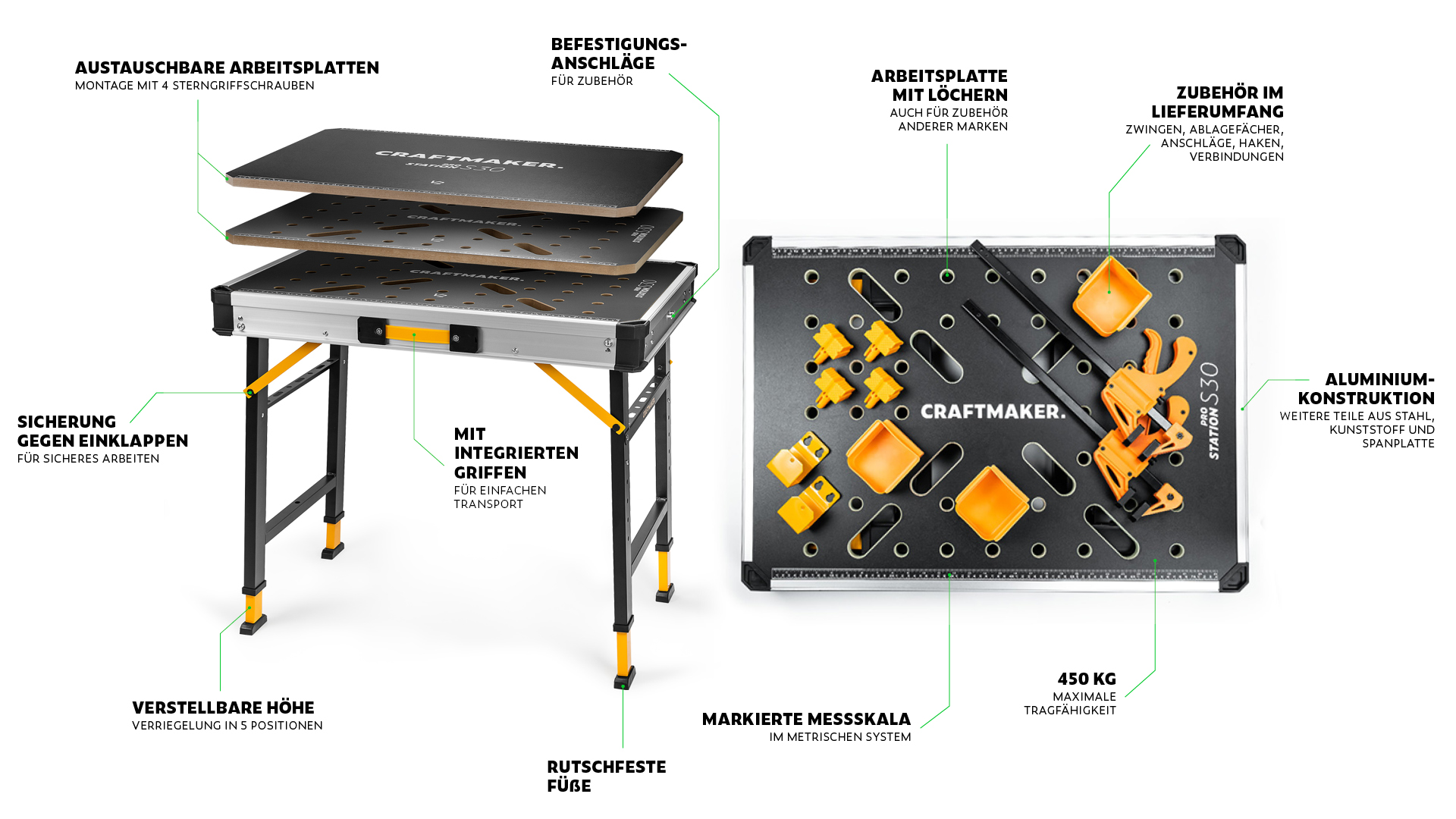Klappbarer Arbeitstisch CRAFTMAKER Pro-Station S30